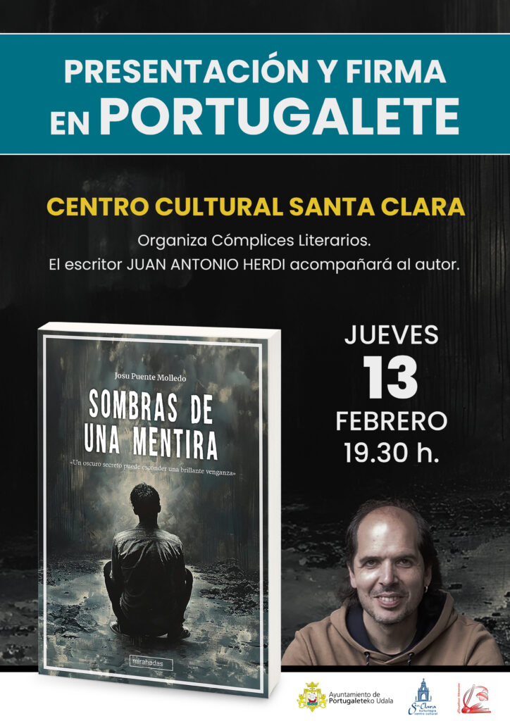 El próximo jueves 13 de febrero tendrá lugar la presentación de SOMBRAS DE UNA MENTIRA en el Centro Cultural Santa Clara de Portugalete.